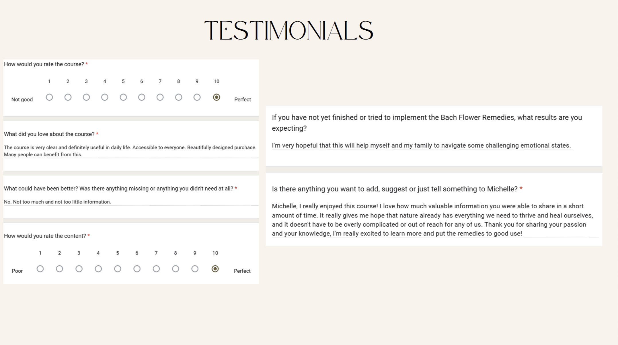 "I really liked how well the course explained Bach flowers and how personal it was. It helped me understand my anxiety and fear better, and I could see how they affect different parts of my life."
