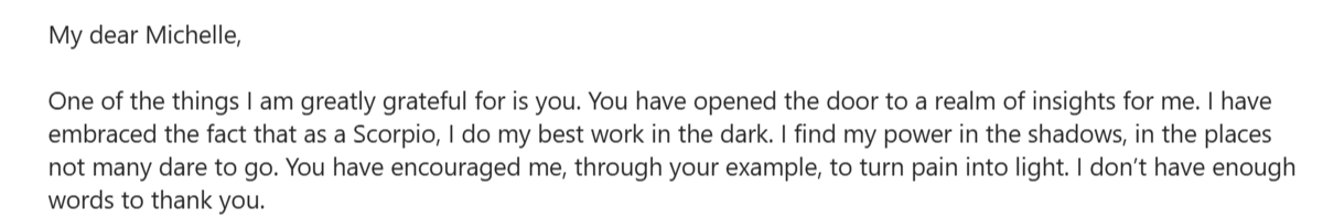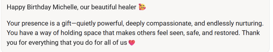 "Michelle is knowledgeable, authentic and passionate about her work and truly cares about improving people's lives with her work."